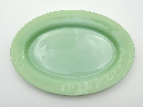 ■商品説明: ファイヤーキングのジェダイ 11・1/2オーバルプラッターです。 レストランウェアシリーズの中で一番大きなプラッターです。 1950年代の製品です。 小ぶりな楕円形のプレートは、いろいろなお料理に応用できるので とっても重宝します。前菜の盛り合わせや、一人前のパスタなど・・・ いろいろなシーンに見栄えがして大活躍♪